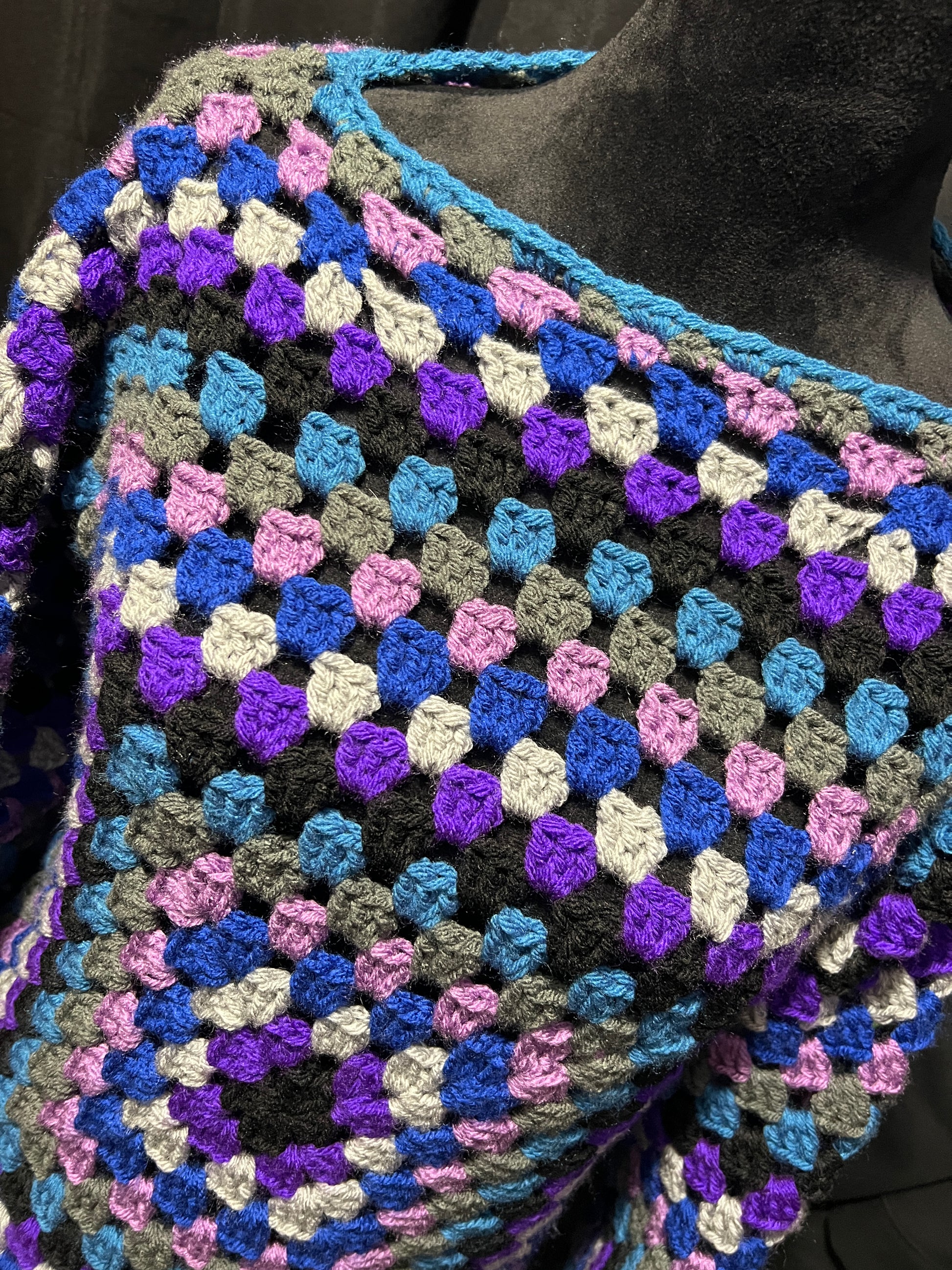 Made with a mix of acrylic yarns in 7 different colors